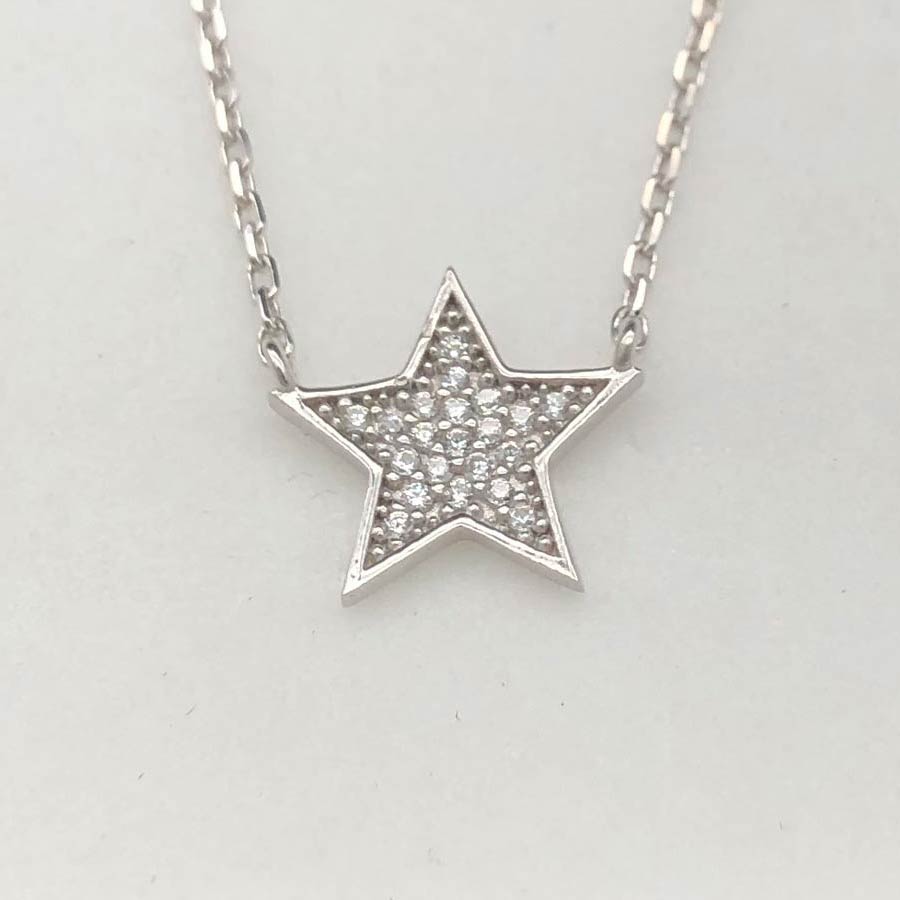 Edles Stern-Collier aus 925 Silber, besetzt mit 18 Zirkonia Steinen