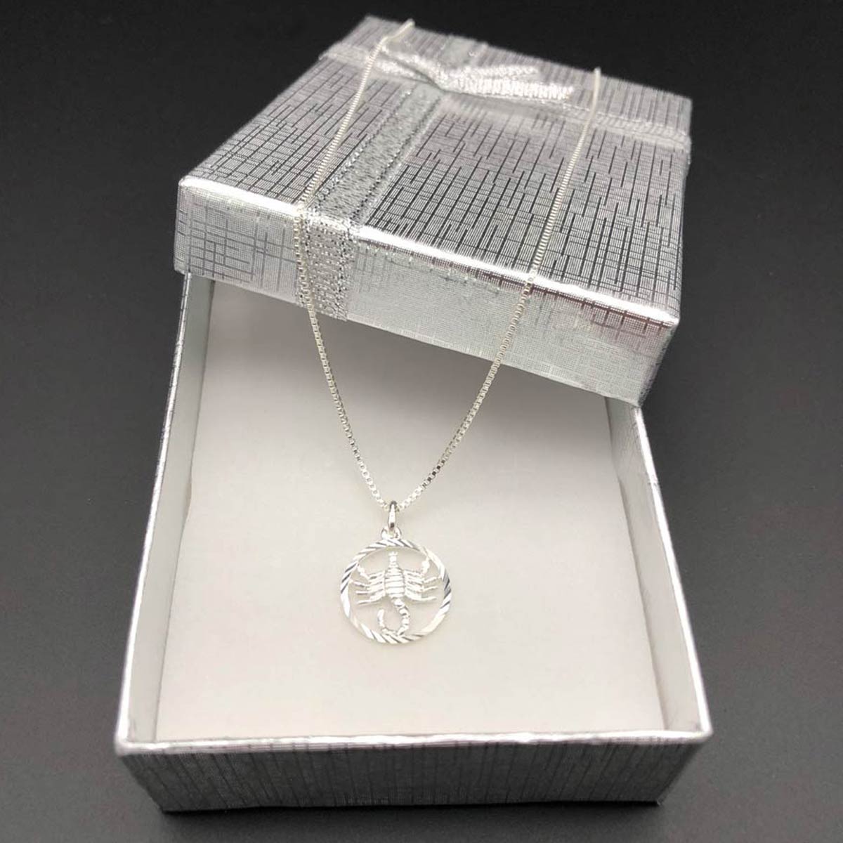 Zeigen Sie ihr Sternzeichen mit dieser schlichten und eleganten Kette mit Silberanhänger. Sowohl Kette, als auch der Anhänger sind aus Silber. Die Kette wird in einer schönen Geschenkbox geliefert.